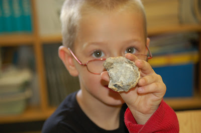 The students continued their study of what is found on the surface of the Earth. We examined rocks with our hand lenses and then worked in pairs to sort the rocks by size, color or texture.